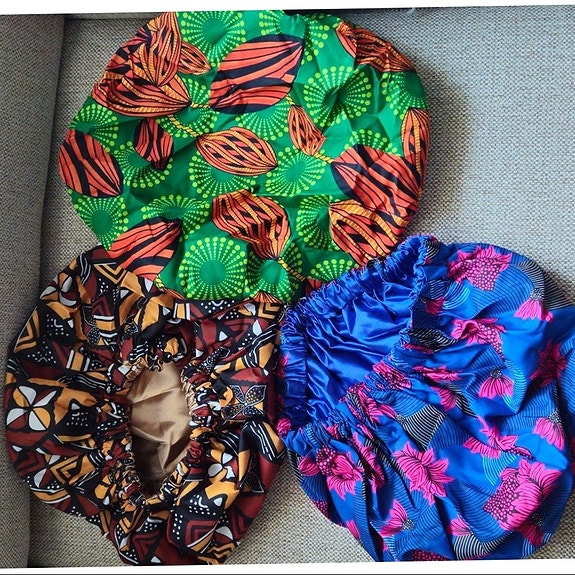 Afrikansk Satin Bonnet Sömnhuva Ankara Mönster Hårskydd - Lager i Sverige GRÖN