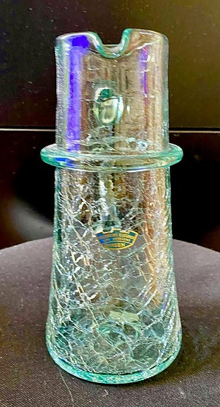 Okänd tillverkare röd glaskanna med bubbelstruktur