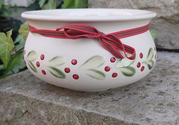 Gabriel Keramik - Skål med lingon & blad - Jul. Vintage.