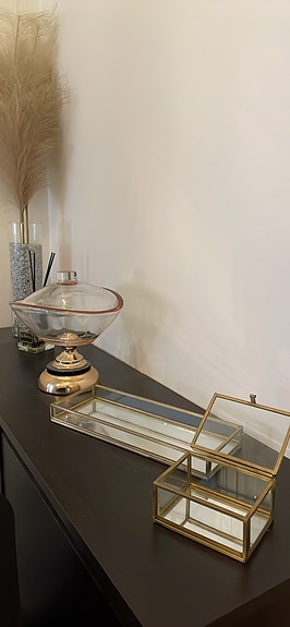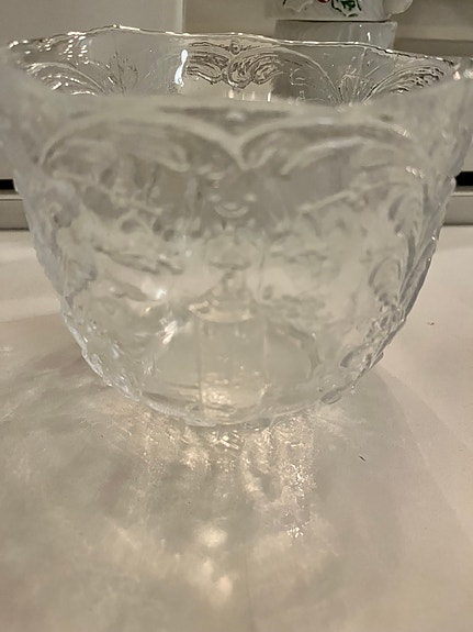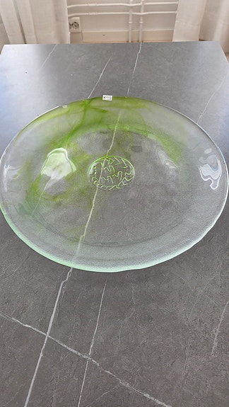 Vackert glasfat för frukt, dekoration handdukar eller dylikt