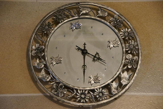 väggklocka gjord i tenn