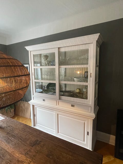 Vit träskänk med skåp och hyllor