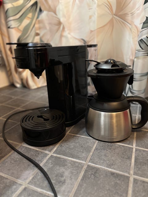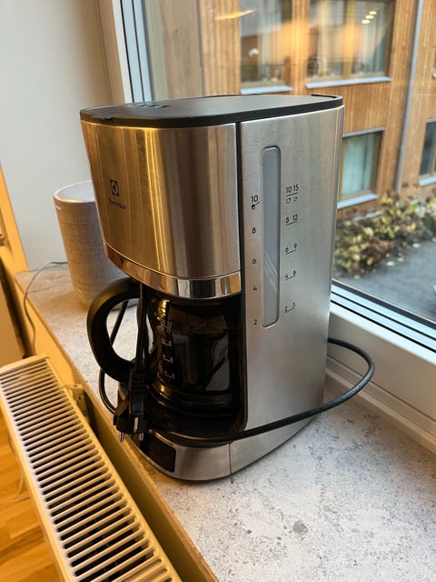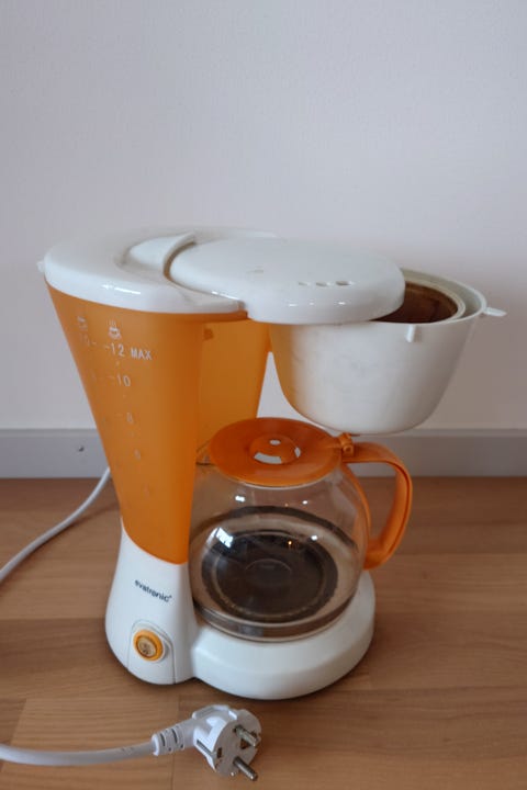En vanlig kaffemaskin, bryggare eller en mer avancerad espressomaskin kan hittas billigare begagnad