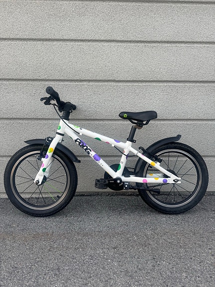 2 800 krFrog 48 barncykel 16" vit med färgglada prickar - mycket bra skick FrogJärfälla31 minLägg till i favoriter.Öppna annons