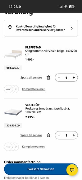 1 200 krIKEA kleppstad sängstomme och madrass 140x200 vit/beige IKEAGöteborg16 minLägg till i favoriter.Öppna annons