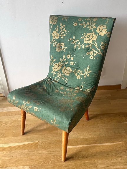 680 krFåtölj med trästomme och blommigt tyg med fågelmotiv.Hok9 timLägg till i favoriter.Öppna annons