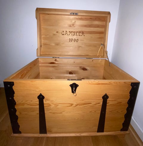 Trälåda med metallbeslag