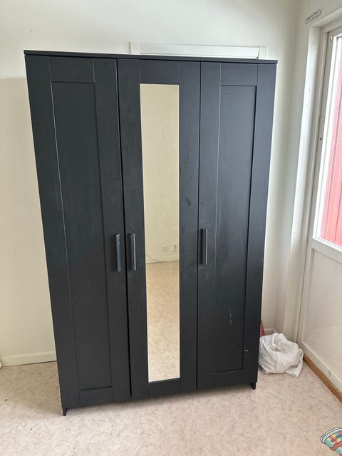 Garderob med skjutdörrar.