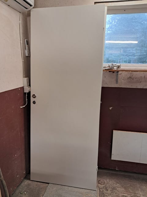 Innerdörrar vita släta.
