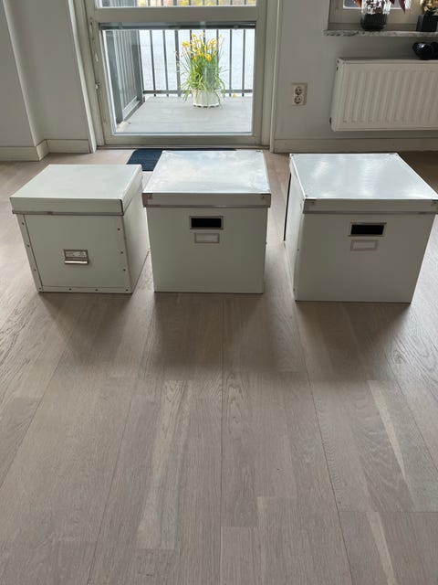 50 krTre vita förvaringslådor med lock och metallhandtag H&M HomeStockholm1 dagLägg till i favoriter.Öppna annons