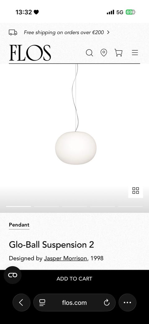 4 000 krFlos Glo-Ball S2 taklampa vit Ø45 cm Jasper Morrison FlosStockholm11 febLägg till i favoriter.