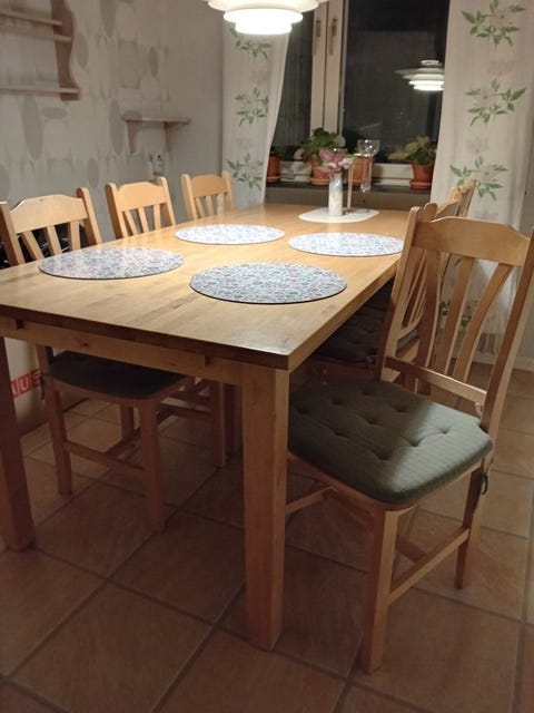 1 200 krAntik matgrupp i ek med träbord och 6 st röda sammetsstolarTomelilla20.12.25Lägg till i favoriter.