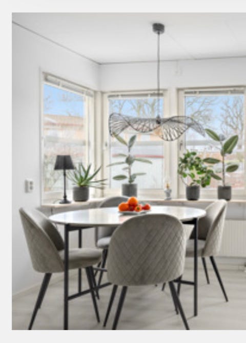 Matbord med 4 klädda stolar