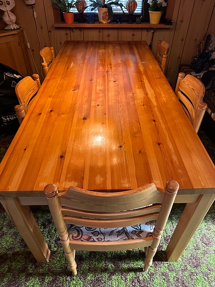 Matbord i furu med 6st stolar