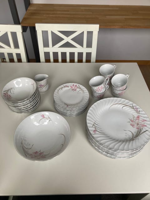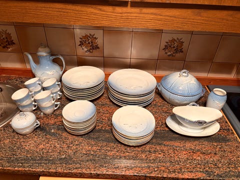 Porslin Servis Set Blå Blommor