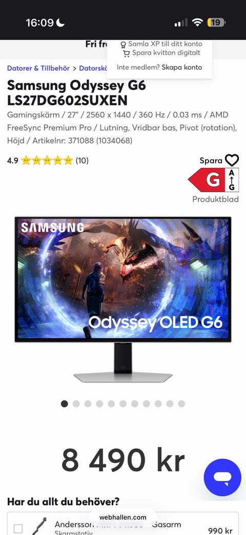 6 500 krSamsung Odyssey OLED G6 bildskärm 27 tumUddevalla10 febKöp nuLastbil i rörelseKan skickasLägg till i favoriter.