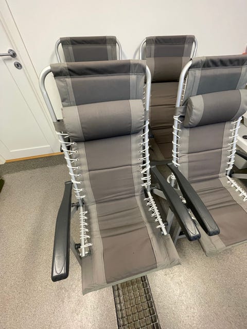 400 krFällbar campingstol grå med armstöd och nackkudde 400kr för alla fyra.Löddeköpinge7 dagarLägg till i favoriter.