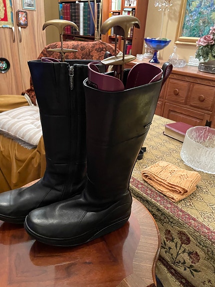 Skinn stövlar dam