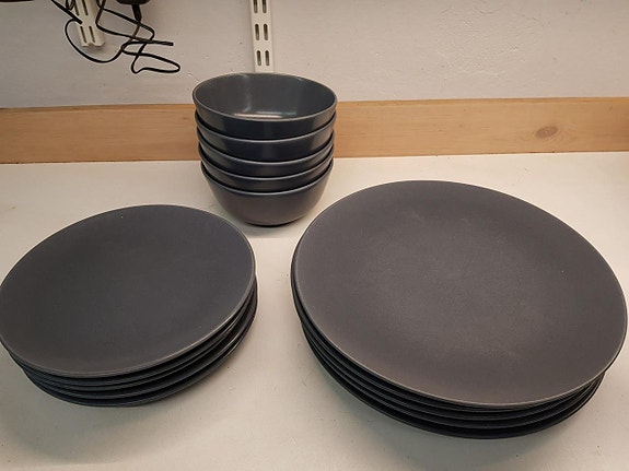 100 krIkea Porslin Stengods blå grå tallrikar skålar 5 av varje IKEAVeddige3 timLägg till i favoriter.
