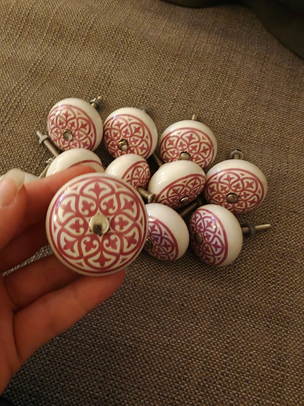 150 kr12 st keramiska möbelknoppar / lådknoppar – vit & rosa mönsterEnskede3 timLägg till i favoriter.