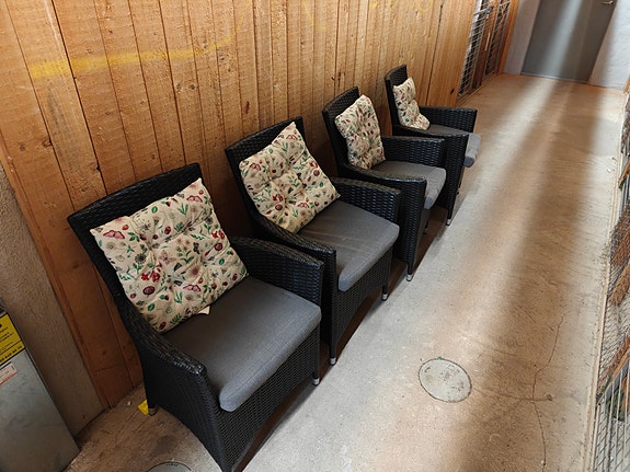 1 000 kr4st Svarta ute fåtöljer med grå dynor och mönstrade kuddarTäby3 timLägg till i favoriter.Öppna annons
