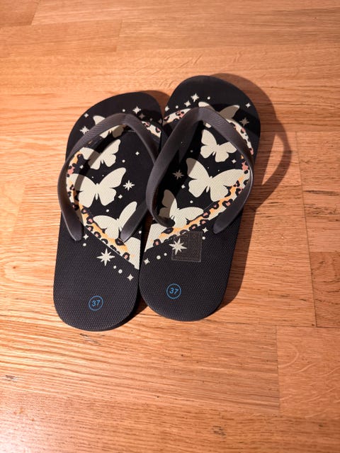 50 krFlipflops i svart färg med fint mönster av fjärilarStl. 37Saltsjöbaden2 dagarKöp nuLastbil i rörelseKan skickasLägg till i favoriter.