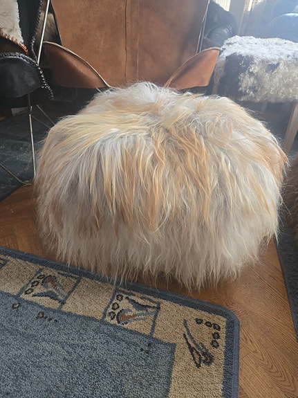 Sittpuff I fårskinns överdrag