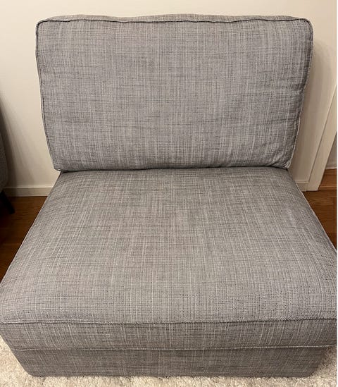 BORTSKÄNKES: Vit fåtölj, finns på Södermalm