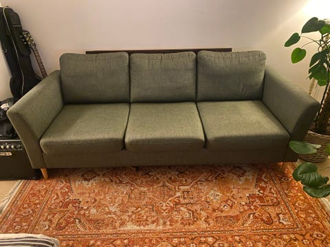 Om du funderar på att köpa begagnade möbler är det bra att ta exakta mått på den plats du har tillgänglig i ditt hem. Jämför sedan med måtten i annonserna. Kolla också om soffan har avtagbart och tvättbart överdrag eller andra skötselråd. Genom att köpa begagnat ger du möbler nytt liv och sparar samtidigt pengar.