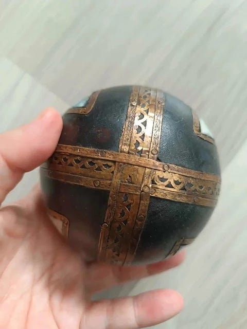 689 krIndian Carved Wood, Bovine & Brass Studded Decorative Ball 9-10 cmKristianstad23 marLastbil i rörelseKan skickasLägg till i favoriter.