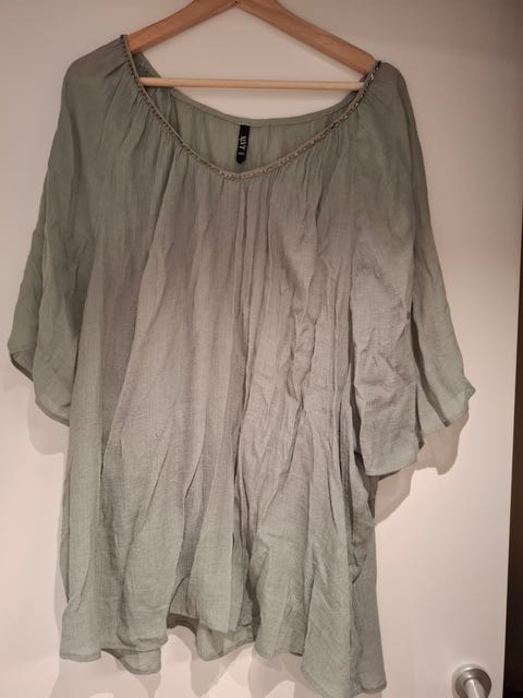 Snygg grön festblus med snygg detalj i halsen inköpt på Kappahl xlnt i strl 2 Xl