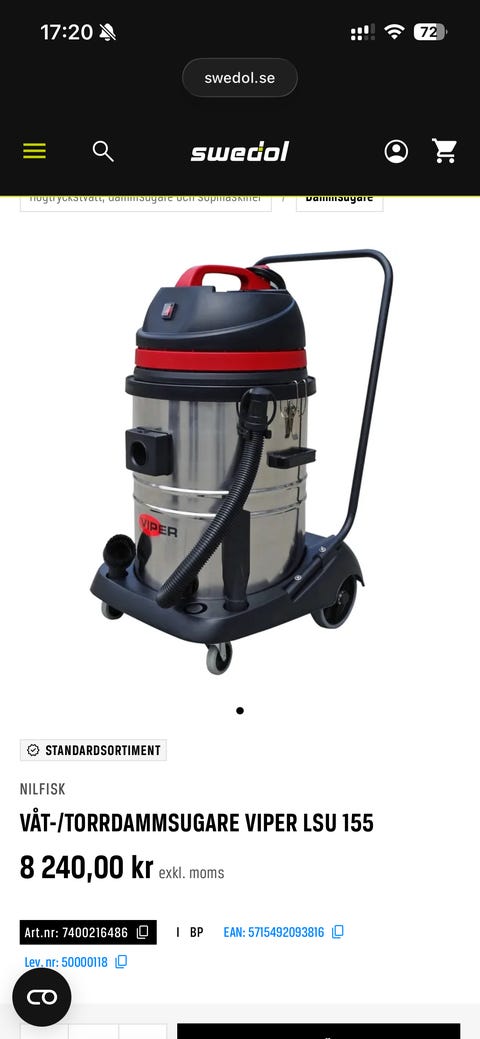 5 999 krNILFISK - VÅT-/TORRDAMMSUGARE VIPER LSU 155Domsjö2 dagarKöp nuLastbil i rörelseKan skickasLägg till i favoriter.