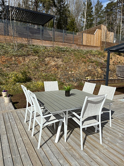 1 000 krMatgrupp utomhus bord med glasbordsskiva och 6 stolar gråMånsarp12 aprLägg till i favoriter.Öppna annons