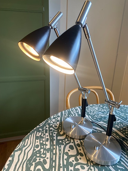 450 krTvå stycken bordslampor (Belid) i svart och kromHässelby1 timLägg till i favoriter.Öppna annons