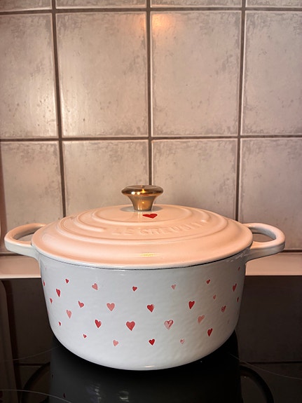 3 900 krLe Creuset gryta emaljerat gjutjärn vit med hjärtmönster Le CreusetLöberöd18 marKöp nuLastbil i rörelseKan skickasLägg till i favoriter.