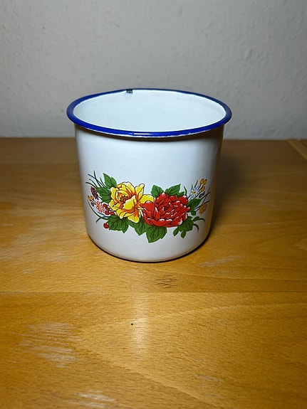 10 krMugg emalj vit med blommotivLimhamn28 marKöp nuLastbil i rörelseKan skickasLägg till i favoriter.
