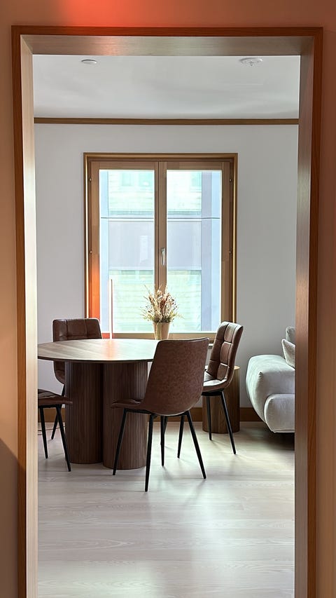 Matsalsgrupp ovalt träbord med 8 stolar brun