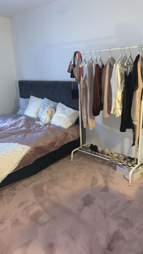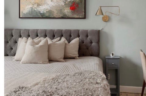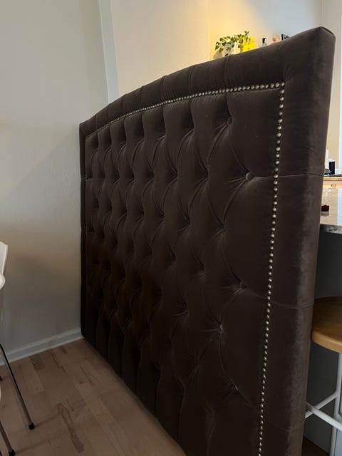Beige sänggavel i sammet