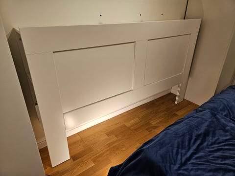 SKÄNKES Vit sänggavel med tillhörande hylla