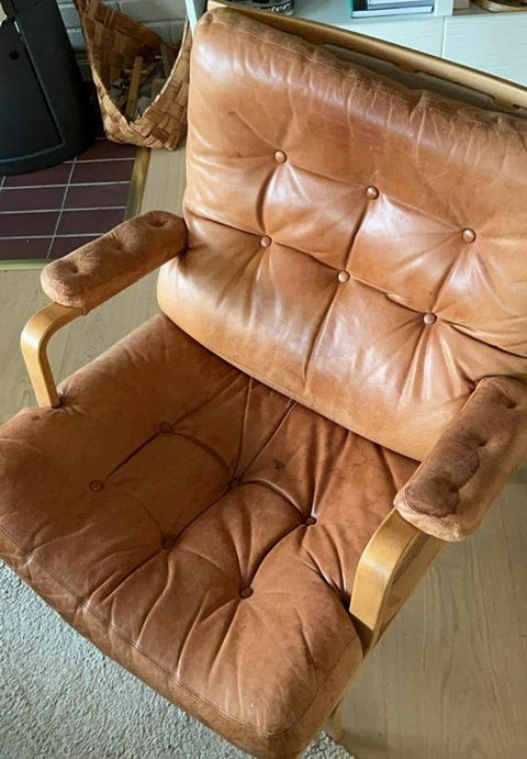 Skinnfåtölj, retro, 2st, bortskänkes!!
