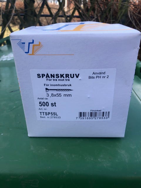 100 krTT Spånskruv 3,8x55 mm 500 stVallda12 marKöp nuLastbil i rörelseKan skickasLägg till i favoriter.Öppna annons