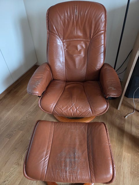 Fåtölj med fotpall brun läder