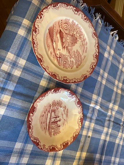 Rörstrand Bengalis tallrikar 2 st rödvit porslin