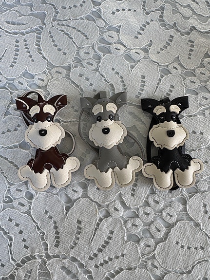 Nyckelring/bagcharm hund i lädermaterial i olika färger