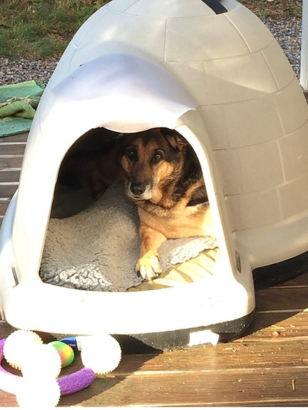 Bästa hundkojan! Håller sig sval sommartid och håller värmen vintertid.