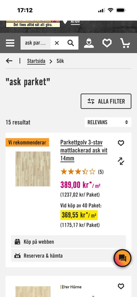 6 345 krBarlinek Parkettgolv Ek Cheesecake 3-stav – 5 paket (+ ca 1,5 kvm på köpet)Bro10 timLägg till i favoriter.