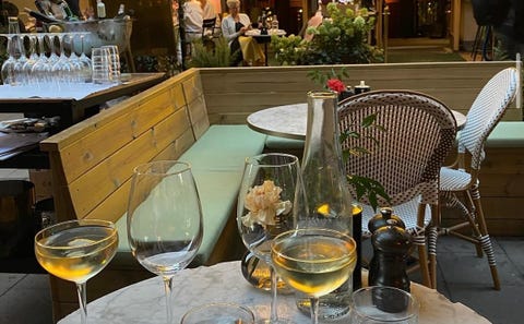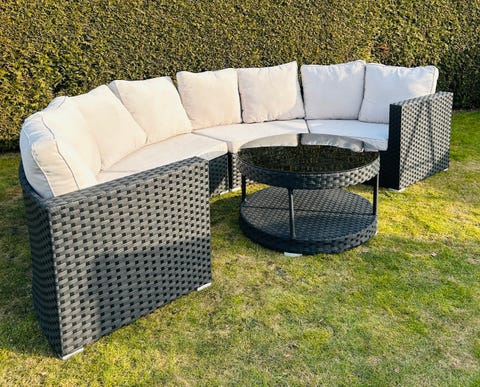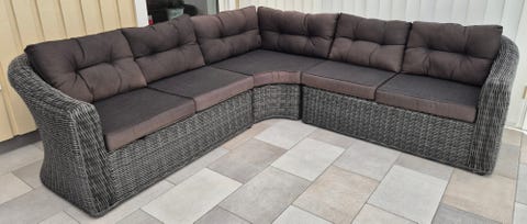 Hörnsoffa utomhus med bord