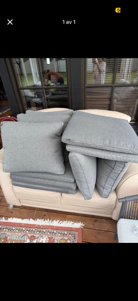 Grå soffdynor och kuddar tyg