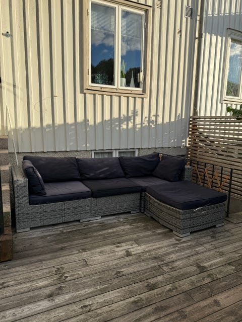 2 500 krHörngrupp utemöbler med dynor i grå konstrottingVällingby1 timLägg till i favoriter.Öppna annons