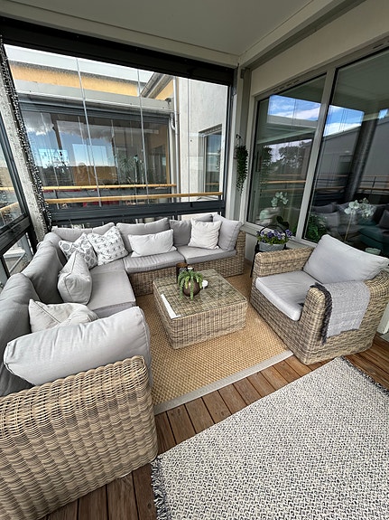 4 000 krHörngrupp i konstrotting med grå dynor till uteplats/balkongAskim22 timLägg till i favoriter.Öppna annons
